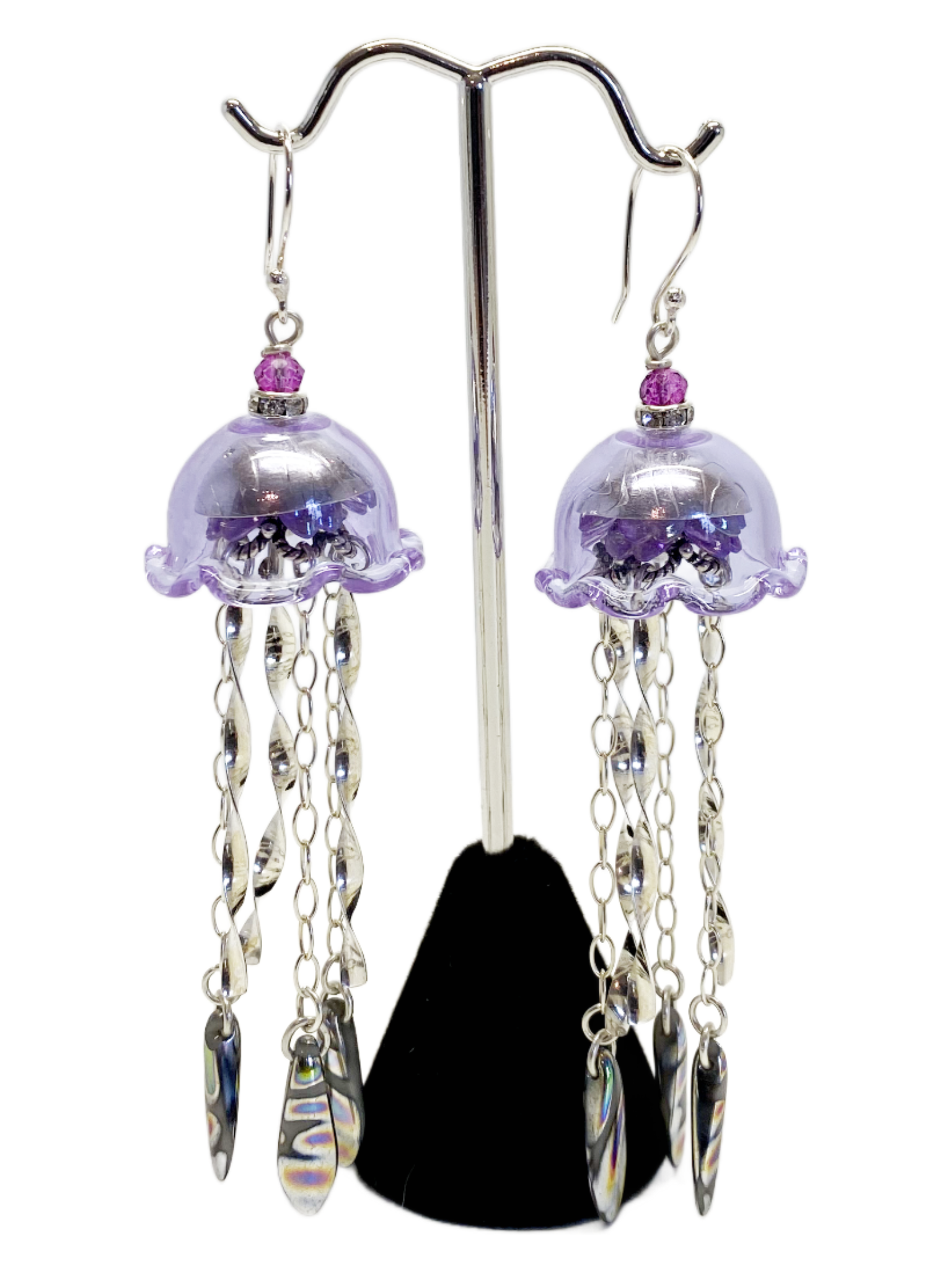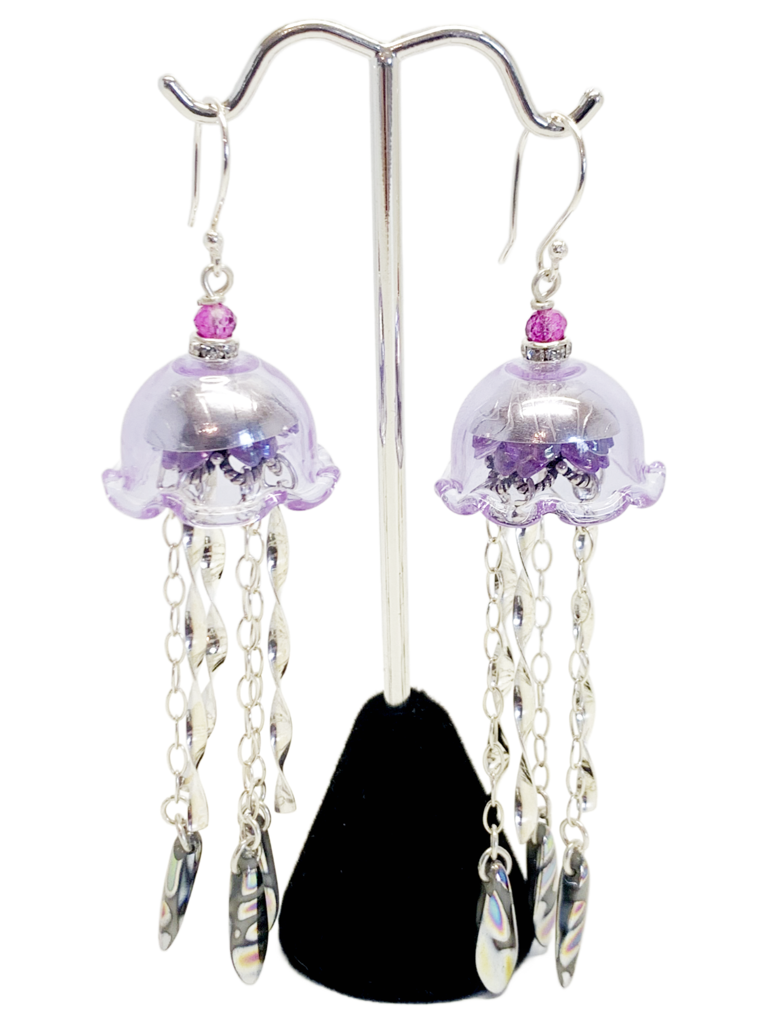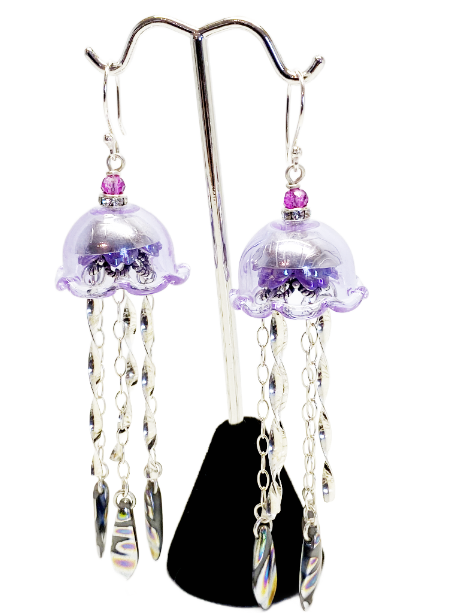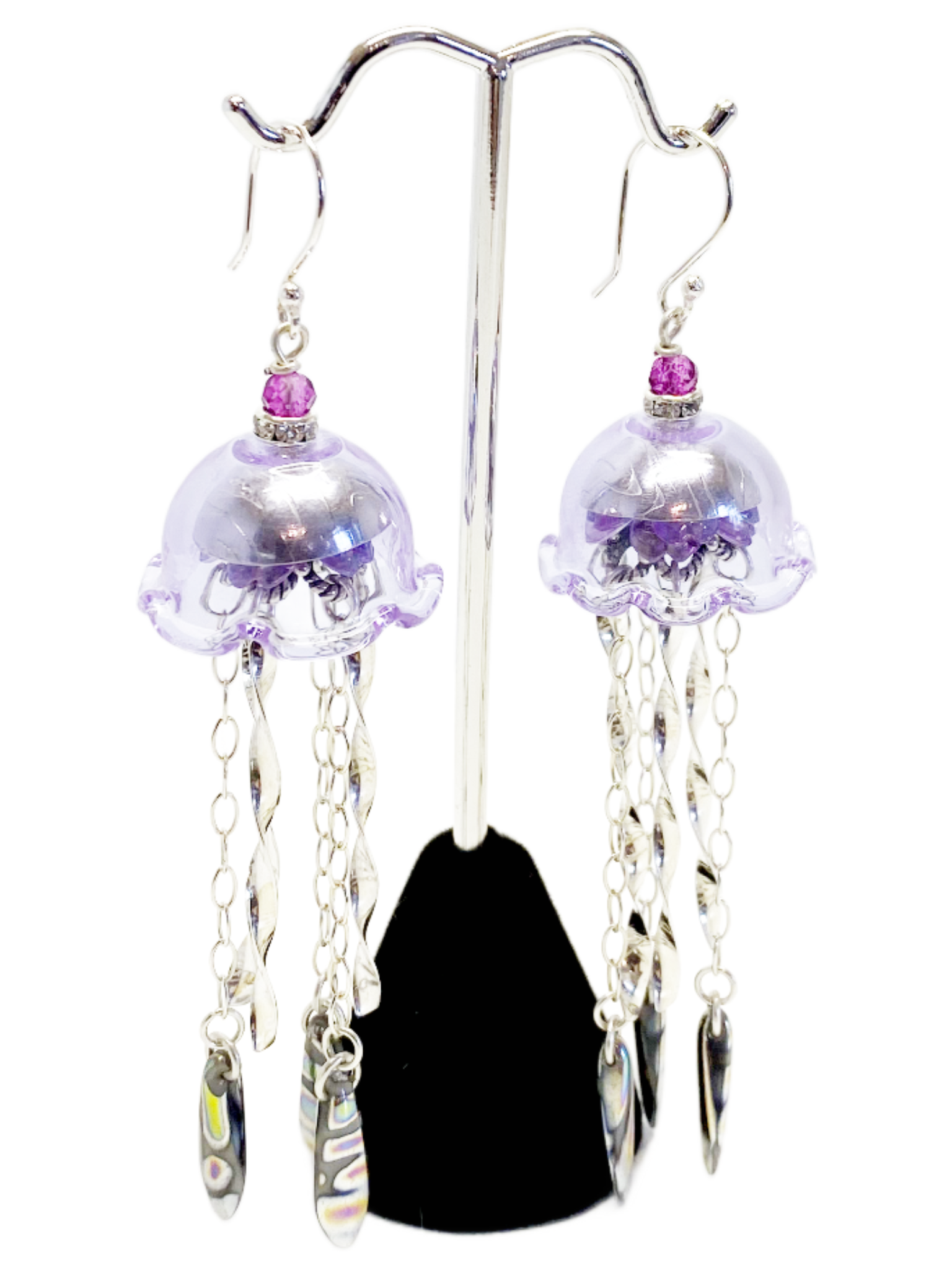 Add a splash of whimsy to your look with these Big Jellyfish Earrings. Handmade from glass and sterling silver, each piece features an original design that dances with every movement. Lightweight and eye-catching, they bring a fun, playful vibe perfect for brightening any outfit. Let these unique earrings be your conversation starter and a joyful twist to your everyday style.