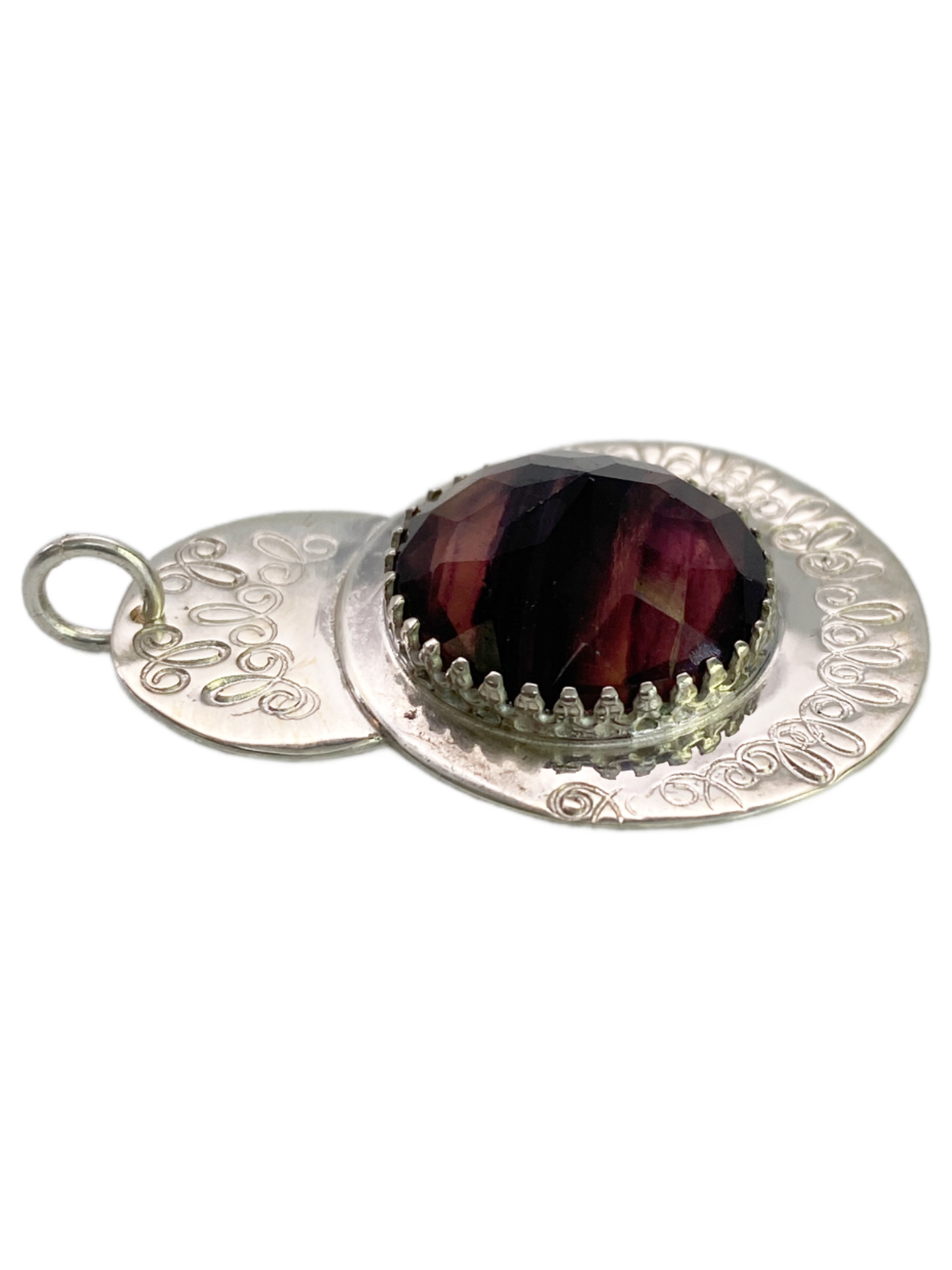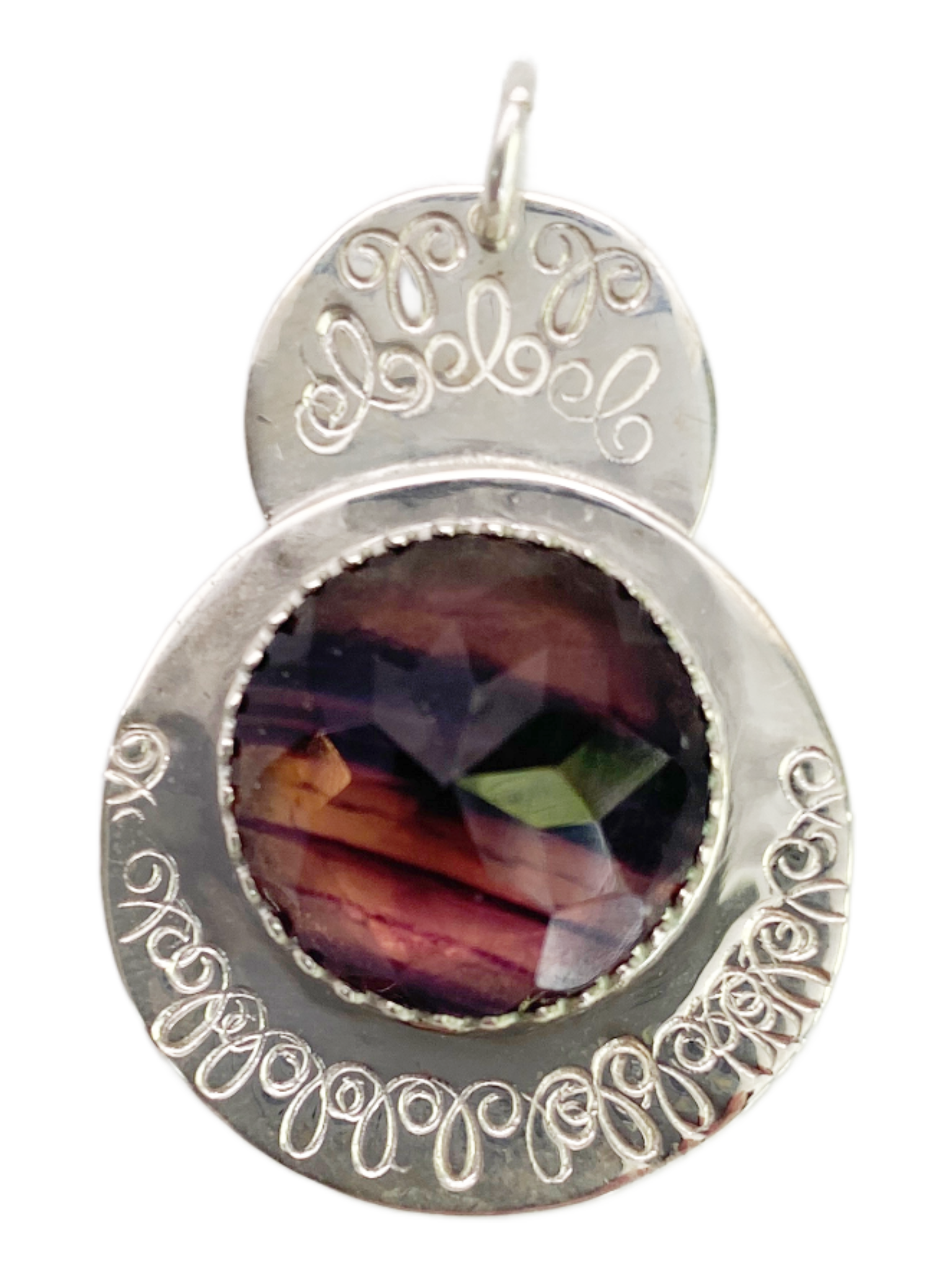 Add a splash of magic to your look with this Banded Fluorite & Silver Pendant. Handmade with love, the vibrant banded fluorite stone supports your heart chakra and offers a gentle shield for your emotions. Whether you're dressing up or down, this pendant brings a playful touch of healing energy and style all day long.