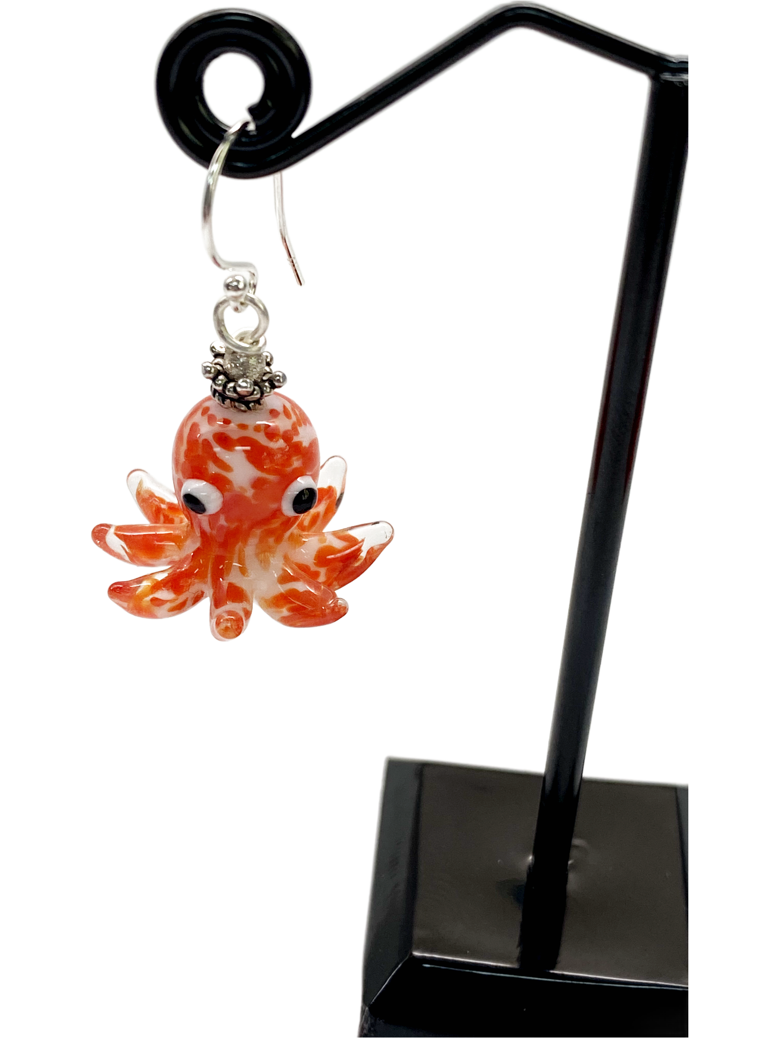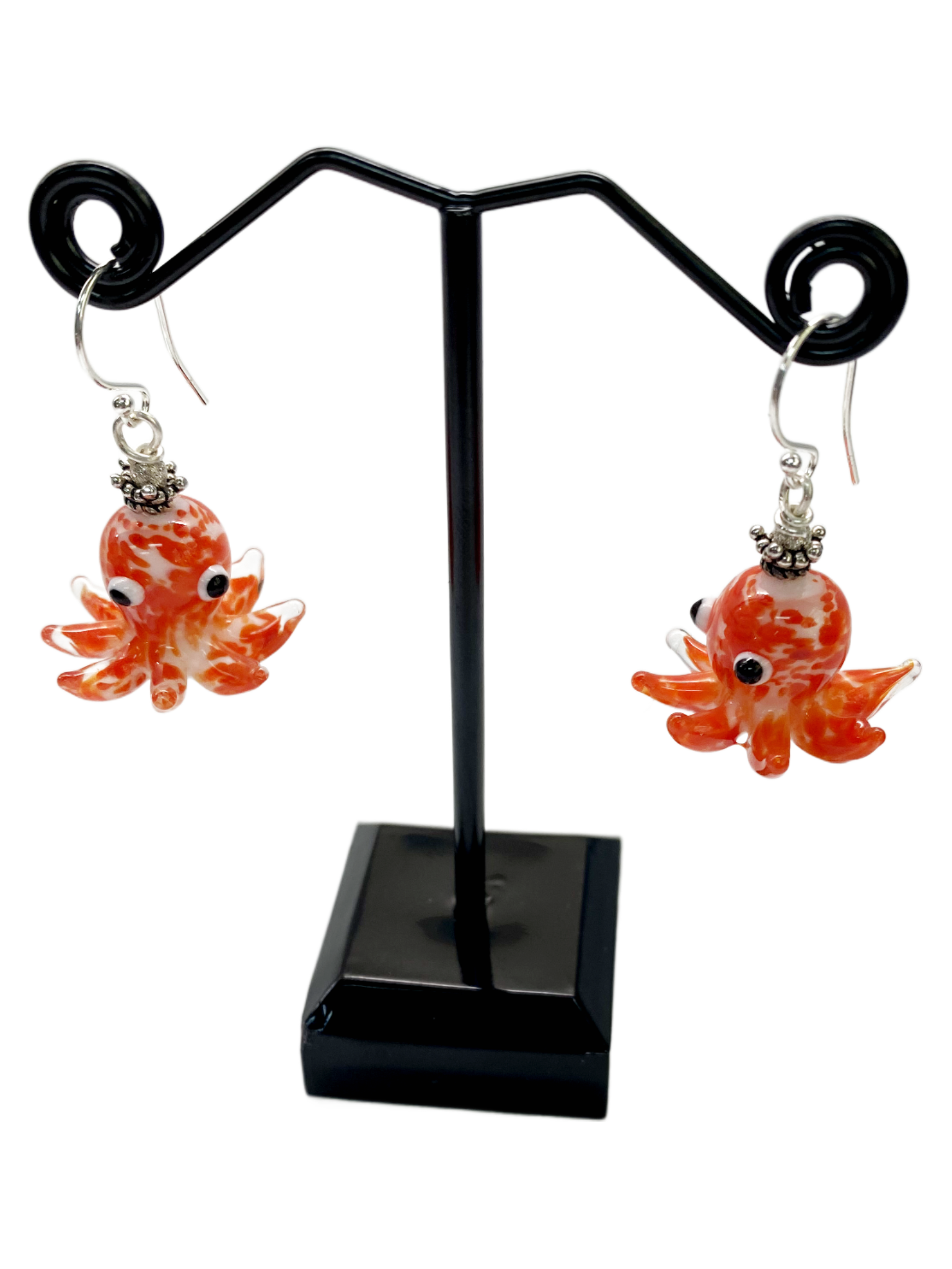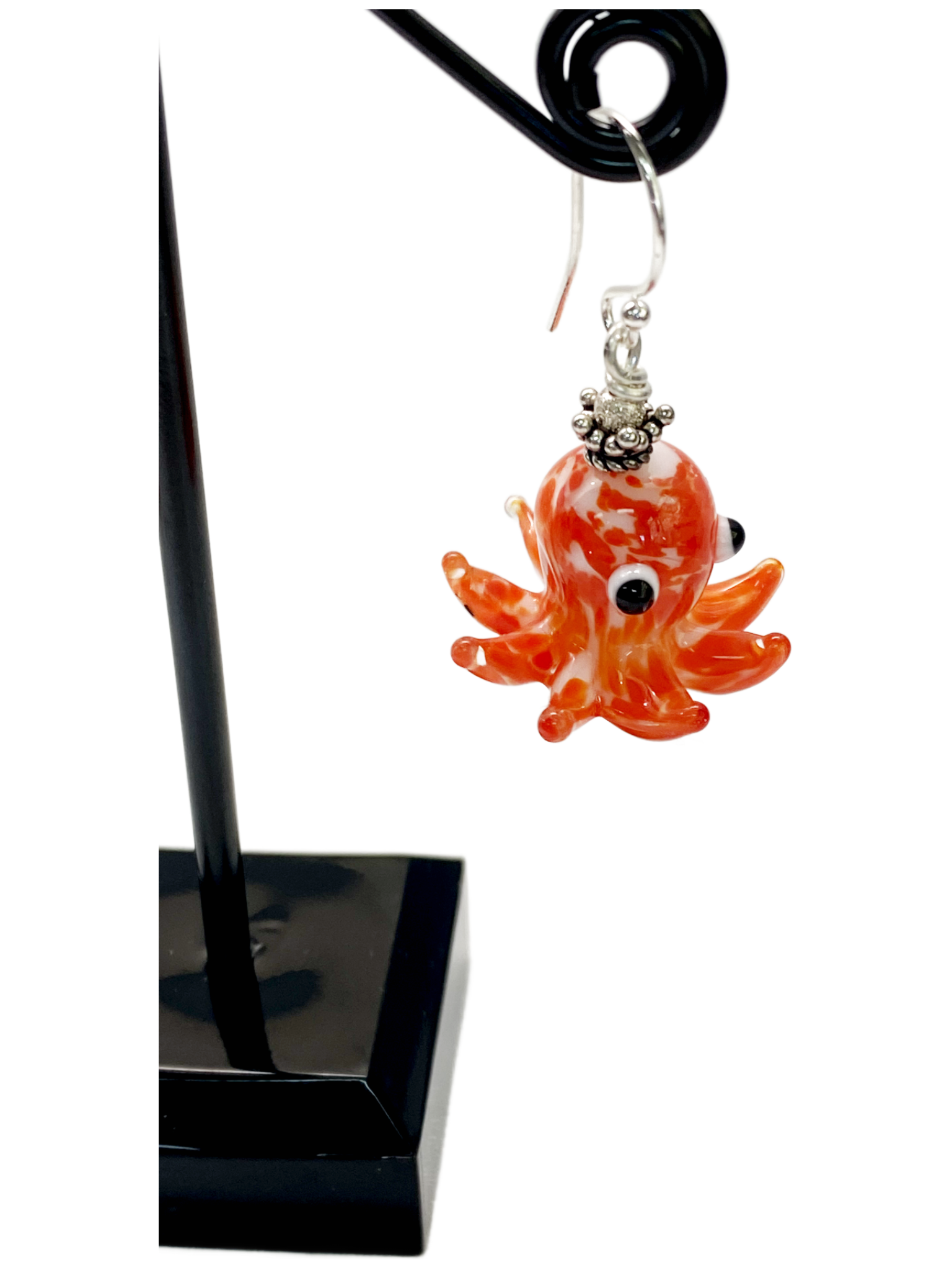 Add a splash of ocean-inspired charm to your look with these playful Lampwork Glass Octopus Earrings. Each delicate octopus is handmade with vibrant glass, bringing unique artistry and whimsy to your style. Set on sterling silver hooks, they’re lightweight and comfortable for all-day wear while adding a touch of underwater magic to any outfit. Perfect for those who love marine creatures and one-of-a-kind accessories!