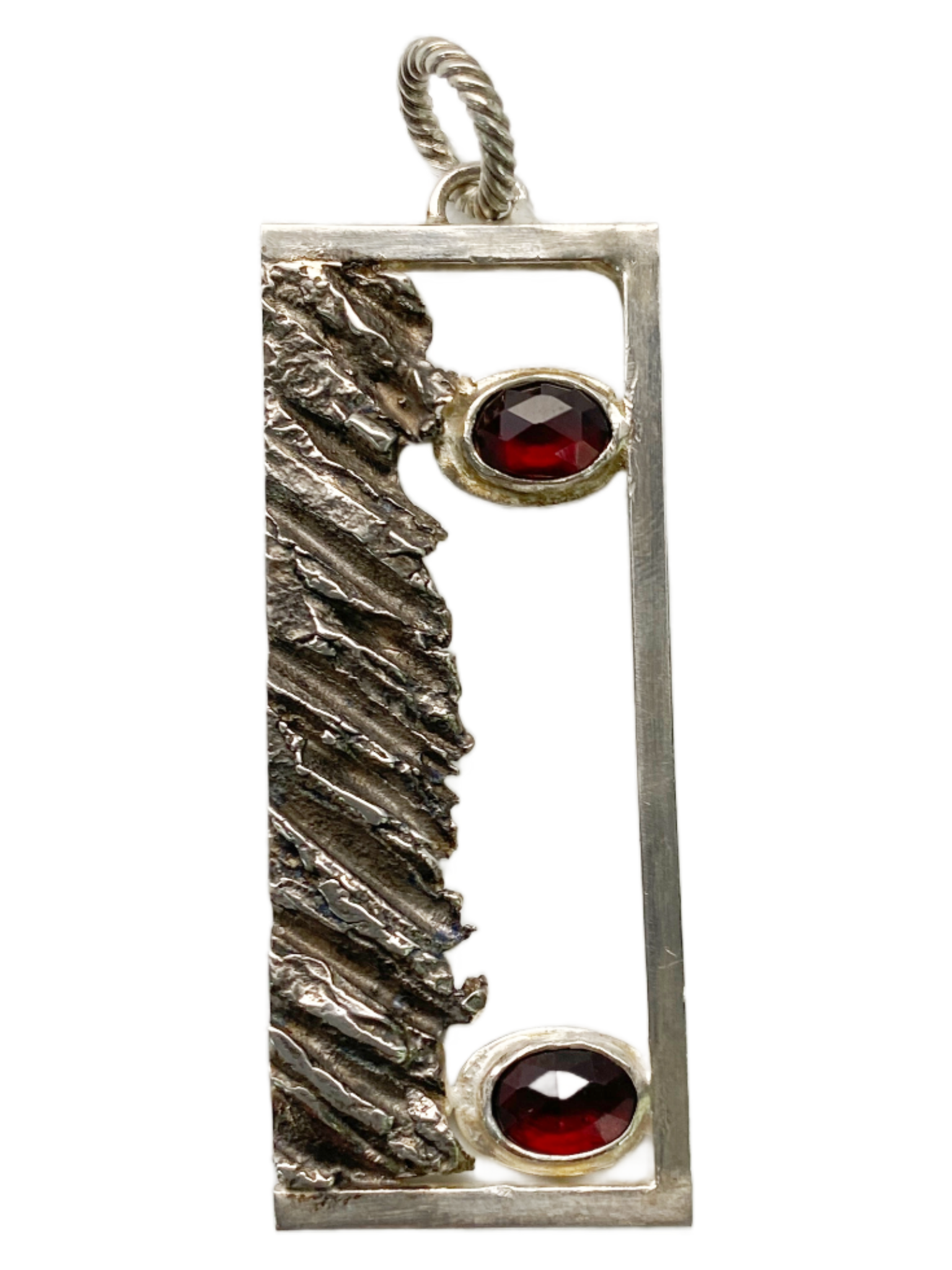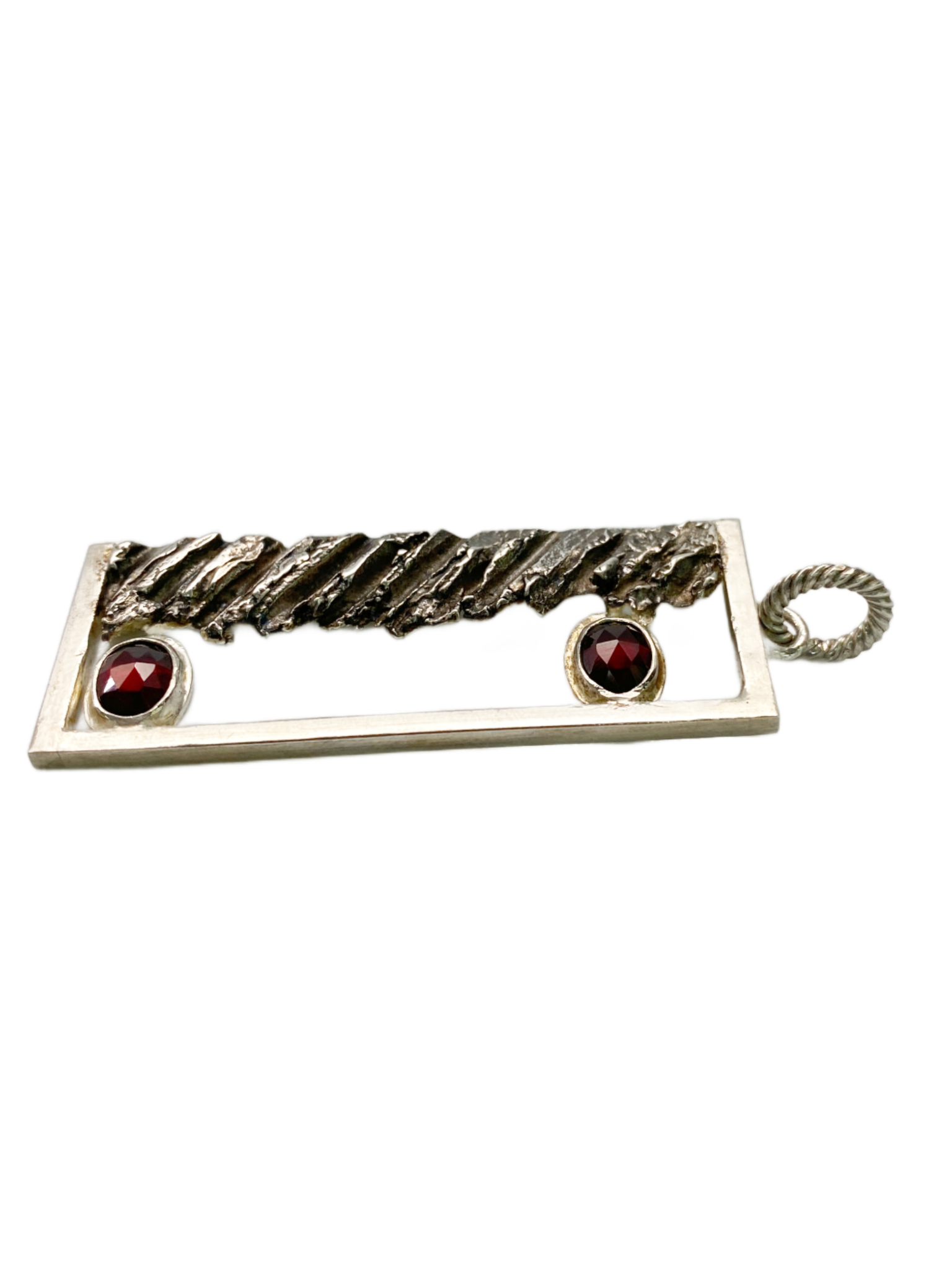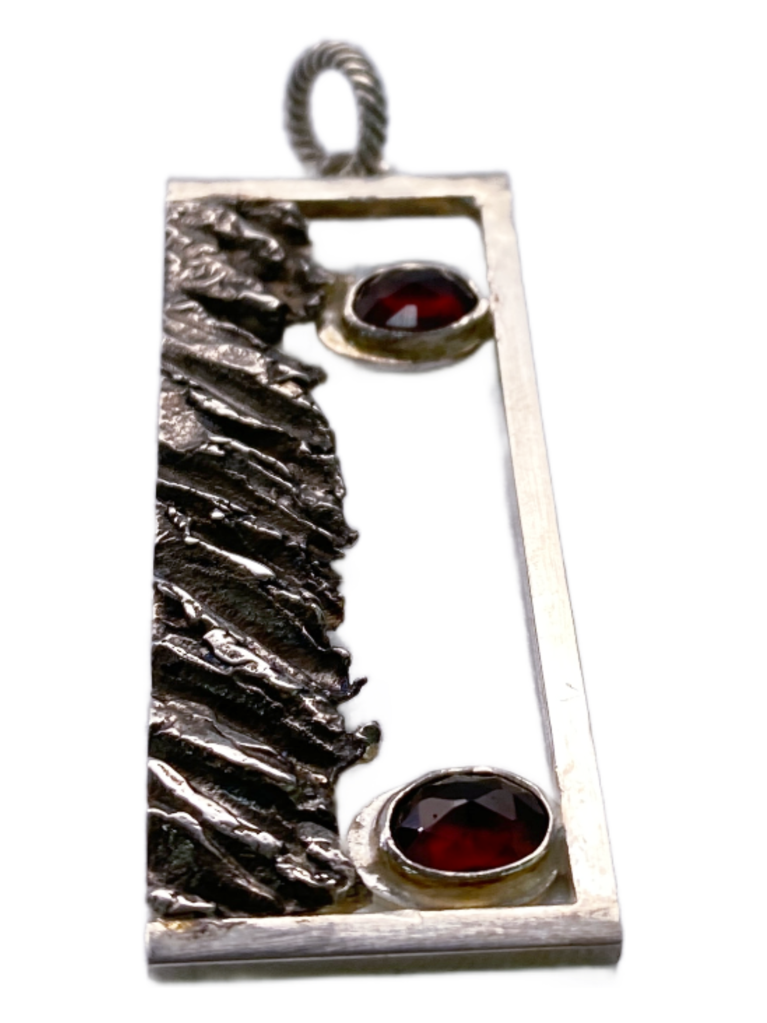 The Emergence Pendant captures the mysterious allure of transformation, featuring a deep-red garnet set in luminous .925 sterling silver. This striking piece evokes the sensation of shifting between dimensions, making a bold statement for those who dare to explore new realms in style. Perfect for adding an edge to any look, it merges timeless elegance with a touch of the unexpected.