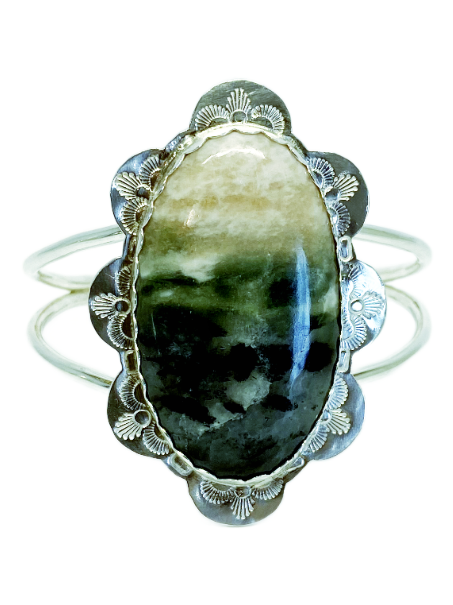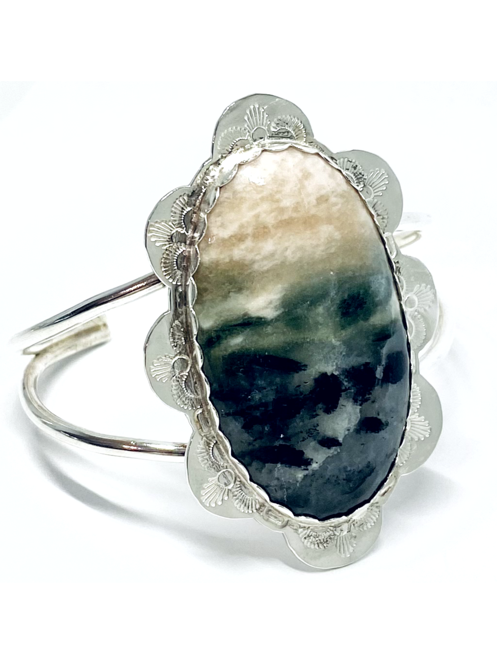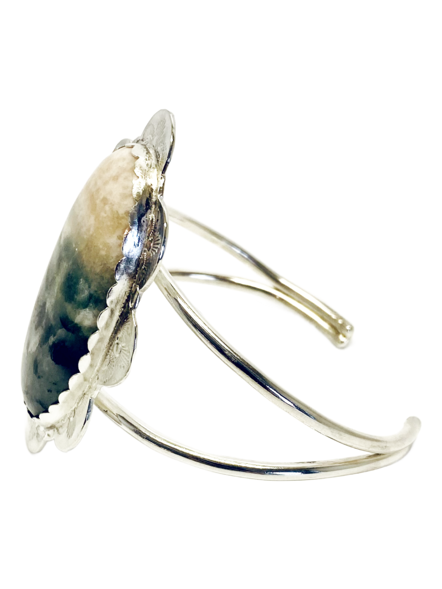 The Summer Storm on the Sea Bracelet combines sterling silver craftsmanship with vibrant Thulite stones, creating a striking statement piece. Its design evokes the dynamic energy of a summer storm over the ocean, making it an elegant accessory that captures both strength and beauty. Perfect for those seeking a unique, expertly crafted bracelet that stands out with natural color and refined artistry.