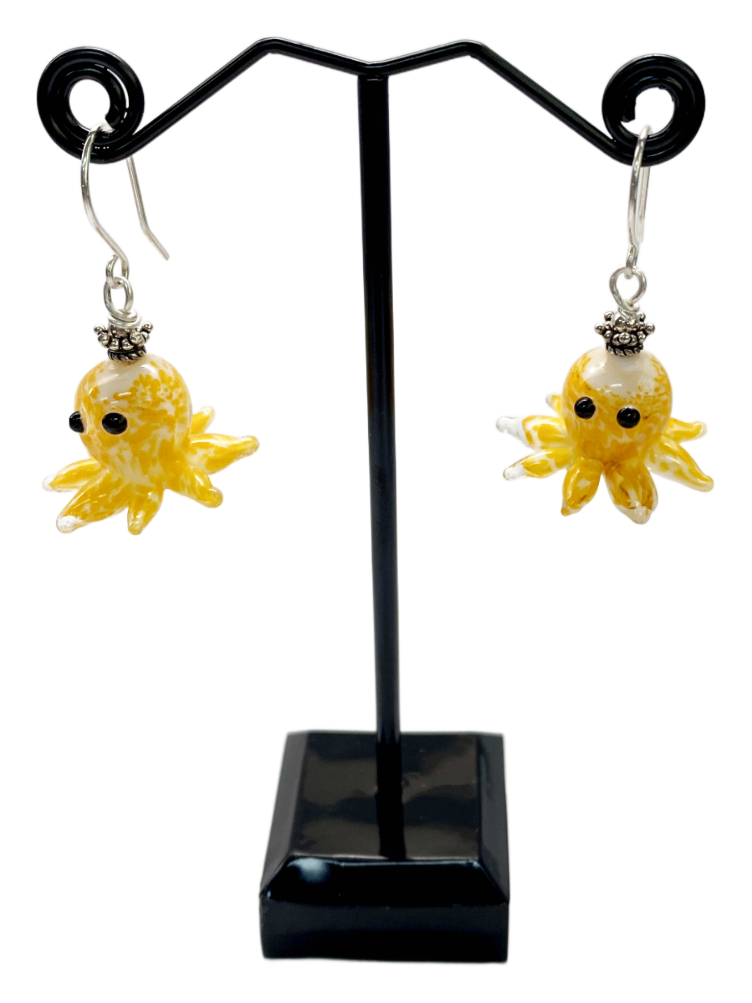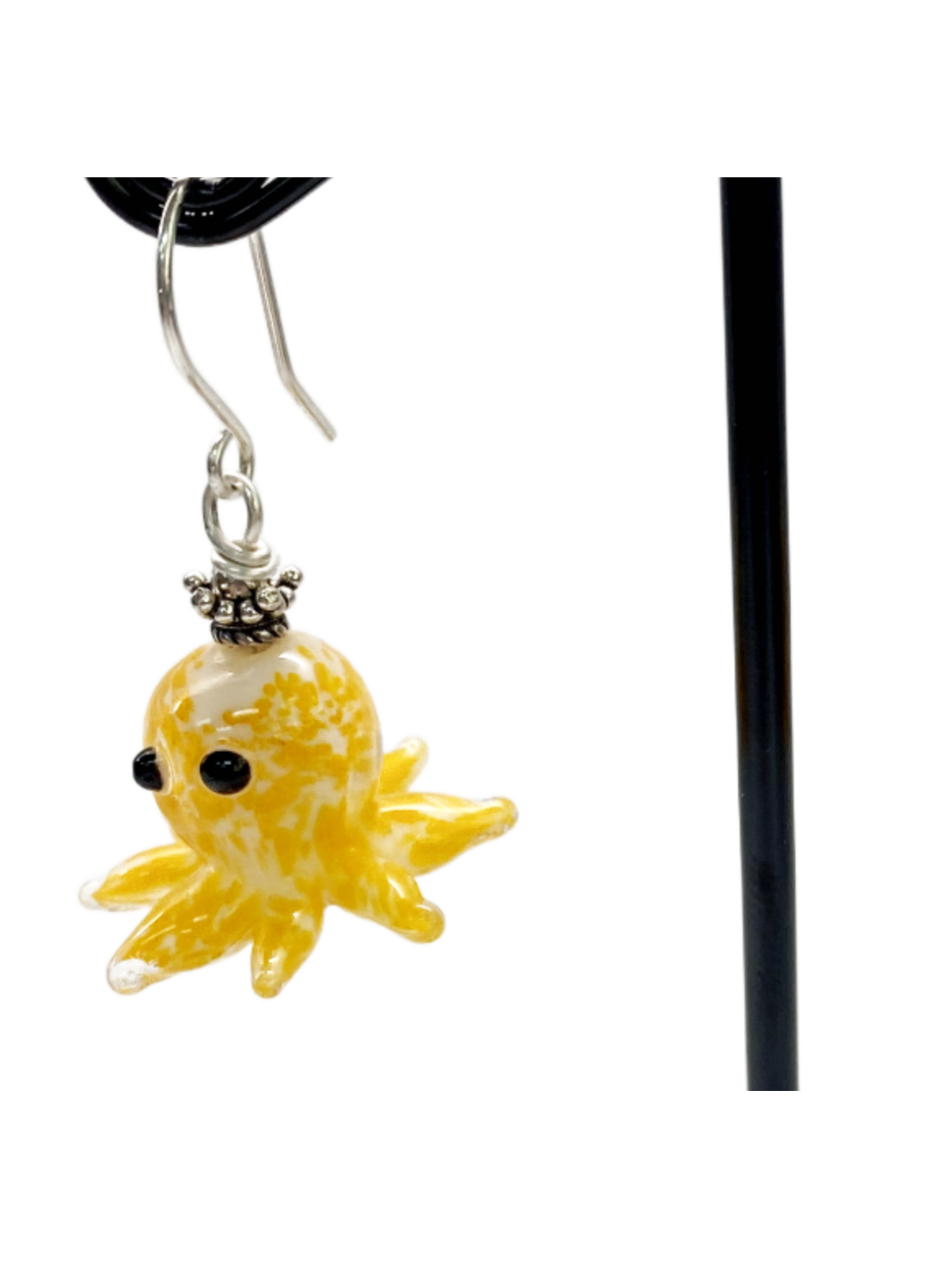 Add a splash of ocean-inspired charm to your look with these playful Lampwork Glass Octopus Earrings. Each delicate octopus is handmade with vibrant glass, bringing unique artistry and whimsy to your style. Set on sterling silver hooks, they’re lightweight and comfortable for all-day wear while adding a touch of underwater magic to any outfit. Perfect for those who love marine creatures and one-of-a-kind accessories!